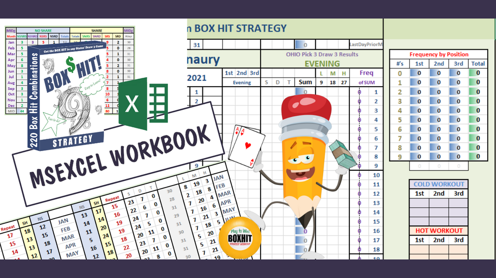 Everything you need to RECORD your States' Pick 3 Draw Results and wager for a BOX HIT is in your MSEXCEL BOX HIT Workbook.